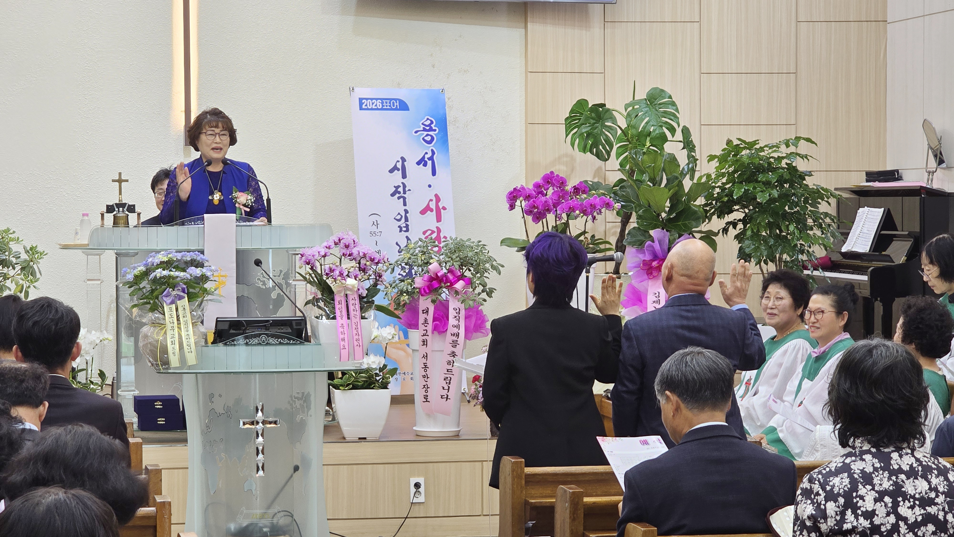ÇÏ¸ç ¼³¸³ °¨»ç¿¹¹è¸¦ µå·È´Ù.¸»¾¸³ª´®±³È¸ ¼³¸³ °¨»ç¿¹¹è Âü¼®ÀÚµéÀÌ ±³È¸ °³Ã´À» ÃàÇÏÇÏ.. |